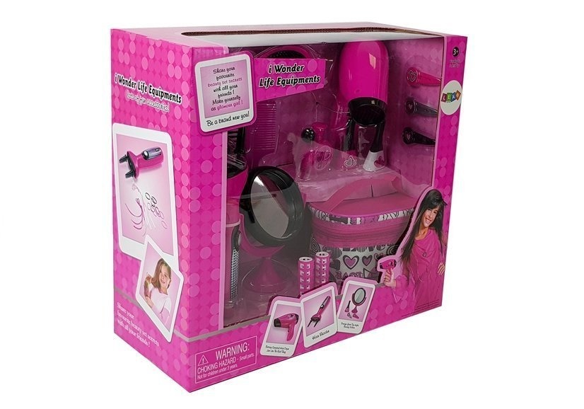 Vanaf nu kan elk klein meisje samen met haar moeder make-up doen en de basisprincipes van schoonheid leren. Een schoonheidsritueel kan beginnen bij de basis, een föhn en een vlechtmachine zorgen ervoor dat het er prachtig uitziet, een set kammen zorgt ervoor dat het kapsel altijd altijd gekamd en in orde is. Met de make-up tas kun je alle accessoires zoals lak of clips kunt verbergen. Deze make-up set heeft ook een droger, rollers, een spiegel, kammen en nog veel meer. Deze make-up set is gemaakt van gecertificeerde, volledig veilige materialen, is CE gecertificeerd en voldoet aan de EN71 norm en bevat accessoires die elk klein meisje zeker zal bevallen, waardoor de speelmogelijkheden worden uitgebreid.